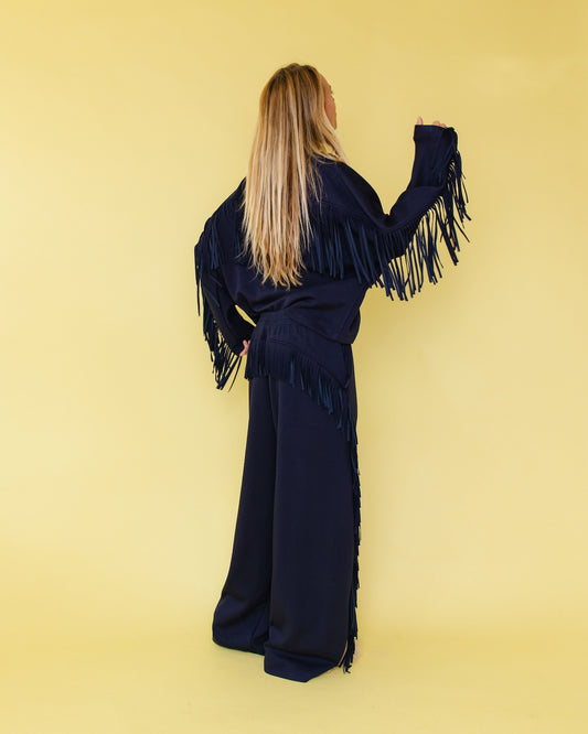 FRINGE SWEATER NAVY