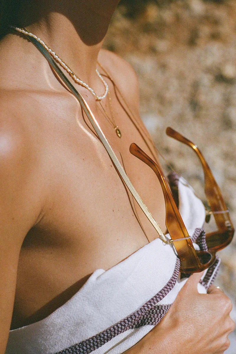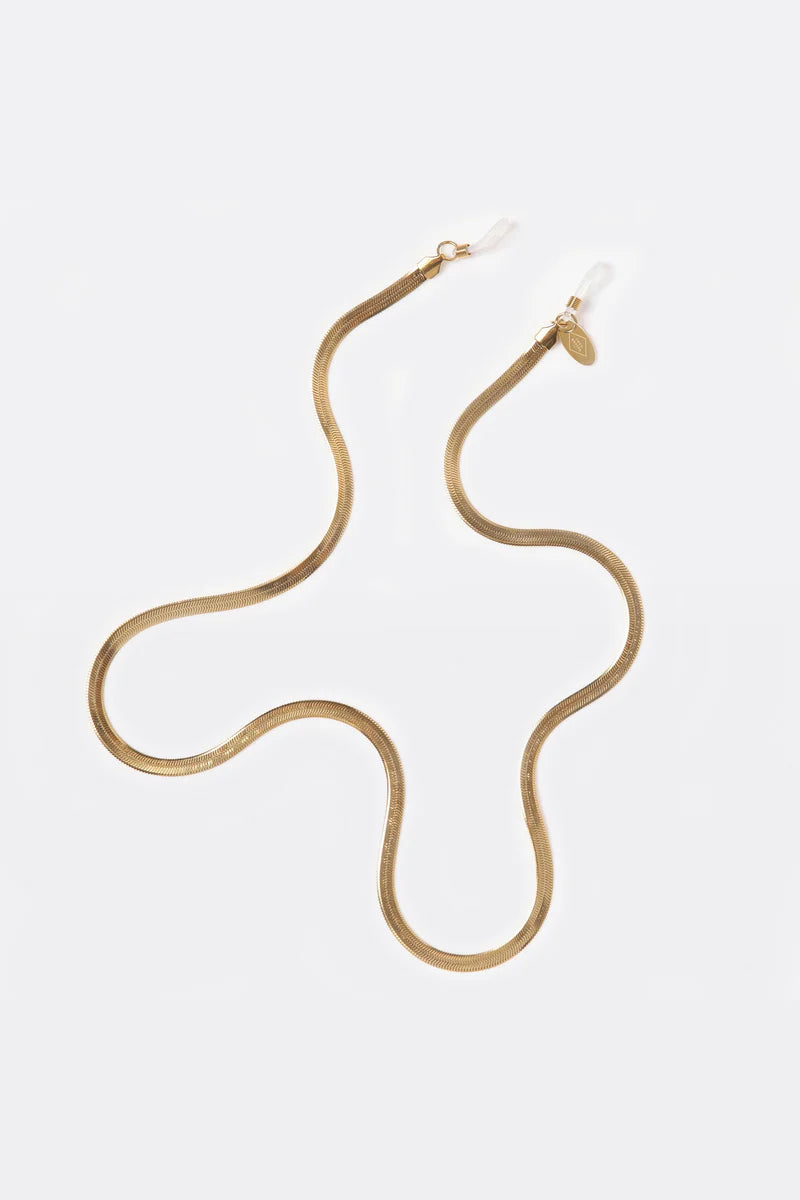 Het Cobra brillenkoordje is het stoerdere design uit de collectie. De sunnycord hangt super mooi langs je gezicht in je hals. Cobra heeft haar naam te danken aan de welbekende slang, waar het design van dit koordje ook op lijkt. Dit sierraad is gemaakt van roestvrij staal en is 18K verguld goud.