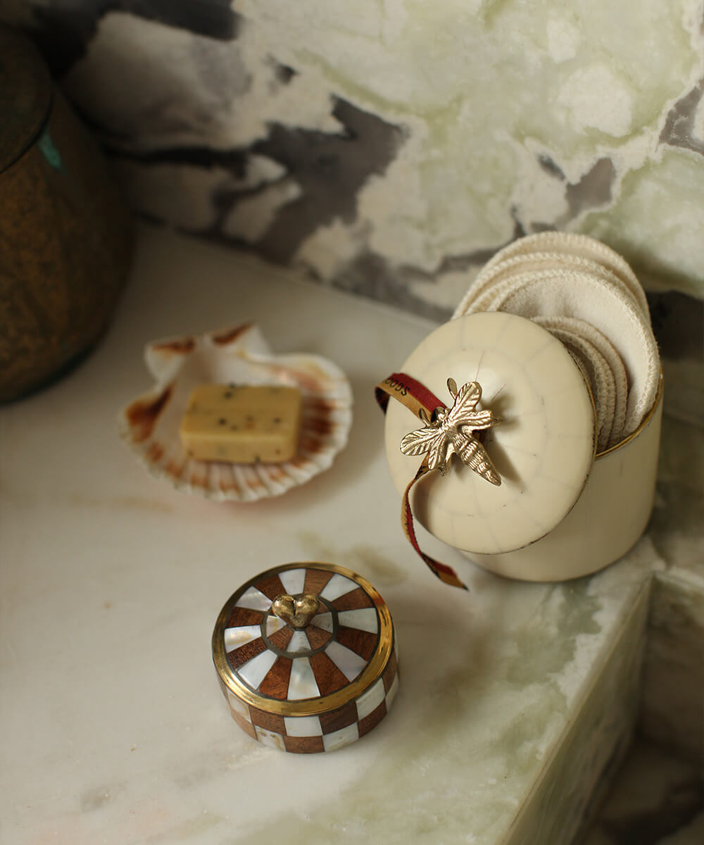 Introducing the Heart Circus Box Woody – a delightful fusion of artistry and functionality for your home décor. Handcrafted with precision in India. This charming storage piece is meticulously fashioned from shell and wood, measuring 5.5 x 7 x 7 cm.