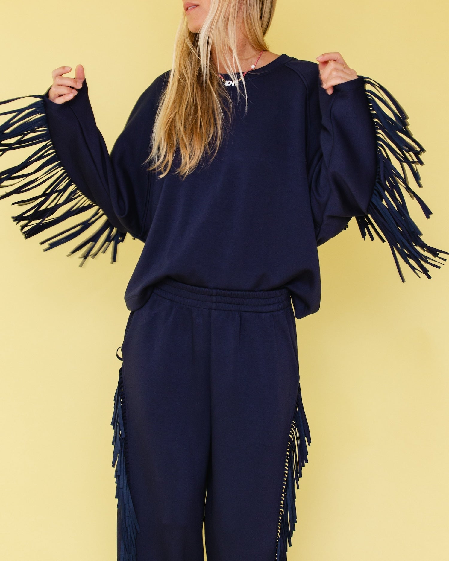 FRINGE SWEATER NAVY