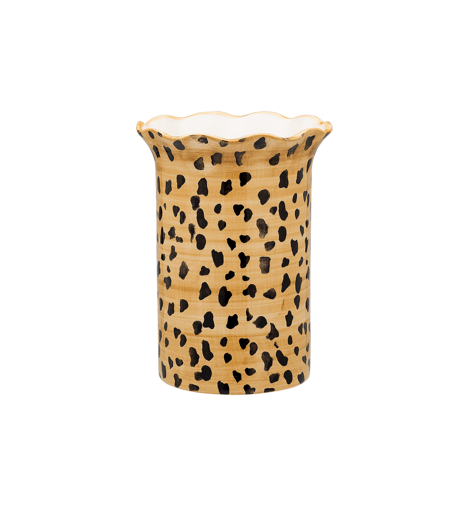The Leopard Vase is an adventurous hand-painted piece that will portray your favourite flowers daringly anywhere in your home. The exciting leopard print in combination with the sculpted edges gives the vase an extraordinarily playful look. Display it in your living room with an exotic bouquet or place it on your kitchen counter to hold all your cooking utensils.