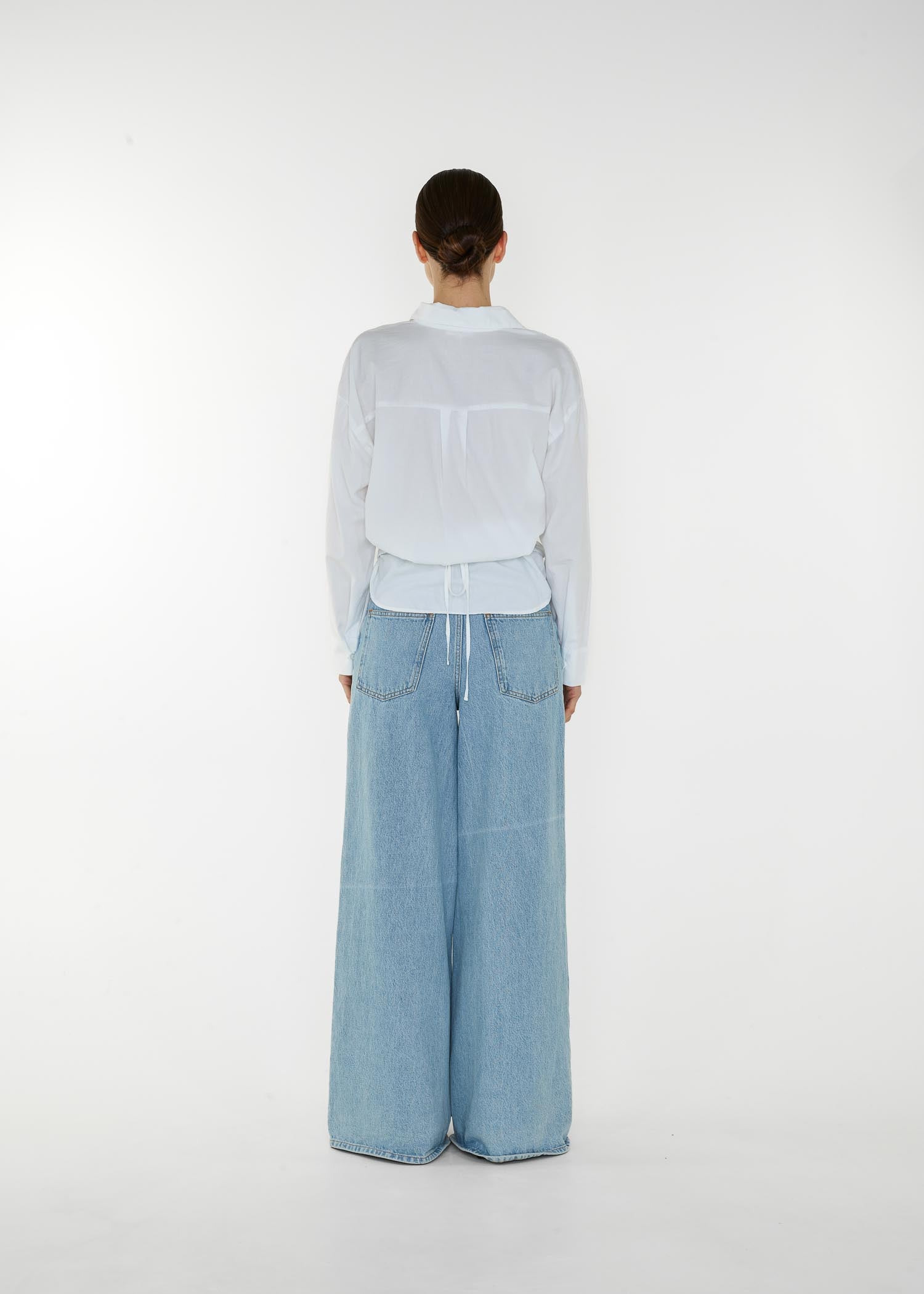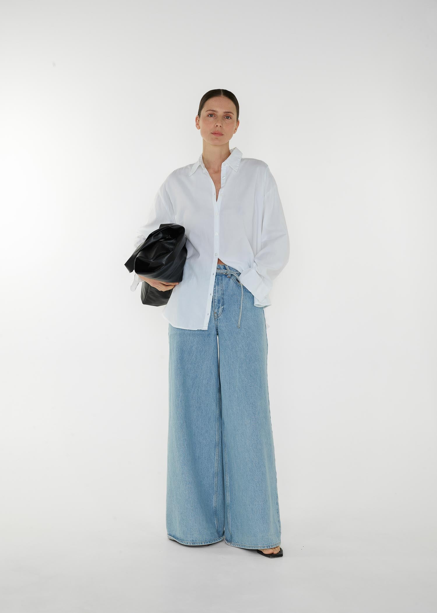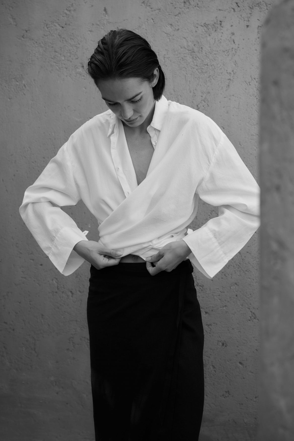 We’ve elevated this bestseller into a new fabric: our classic soft cotton quality. This feature makes it effortless to wrap this blouse. One blouse, different ways to wear. The model is 176cm tall and is wearing size S. The material is 100% cotton.