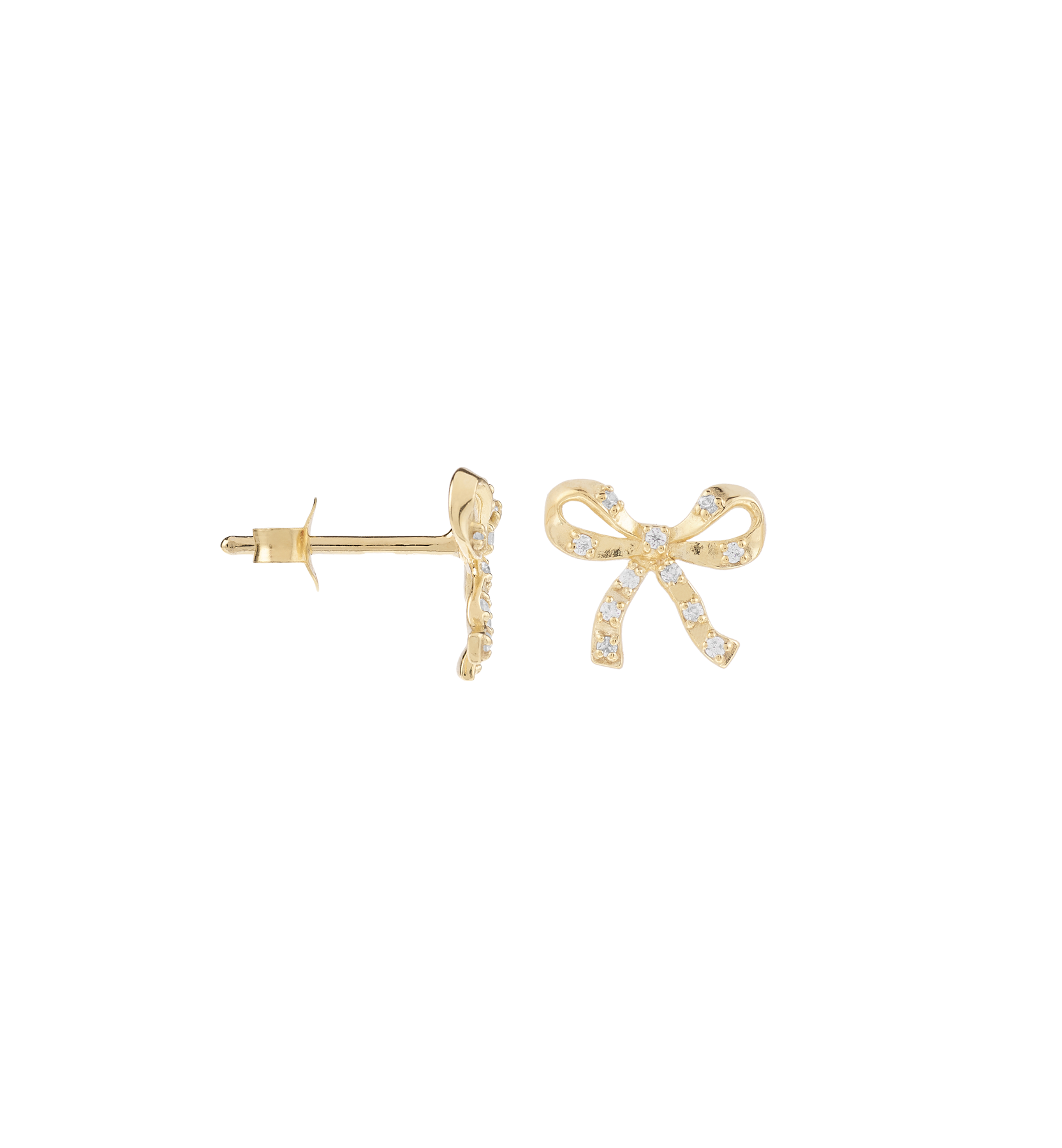 The Single Take a Bow Stud has the beautiful design of a bow encrusted with 11 zirconia gemstones. Pair this with your favourite items from our collection for the most beautiful combinations.